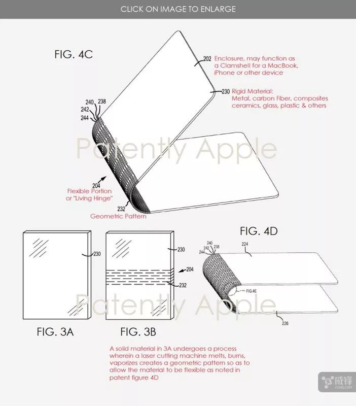 这种想法听起来和微软 Surface Book 的“动态支点铰链”非常相似,但是苹果在专利中解释,这一设计的外壳依然是镁铝合金等刚性材料,但是在旋转轴那里却是柔性材料,这种柔性结构的设计能够让笔记本对折,并且还能够支撑起笔记本的屏幕重量。