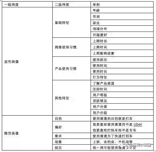 隐性画像:用户内在的深层次的特征描述。包含了用户的产品使用目的、用户偏好、用户需求、产品的使用场景、产品的使用频次等。