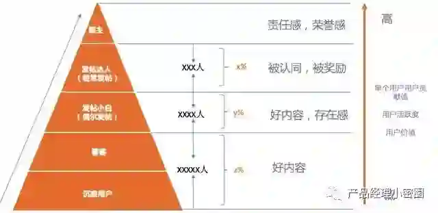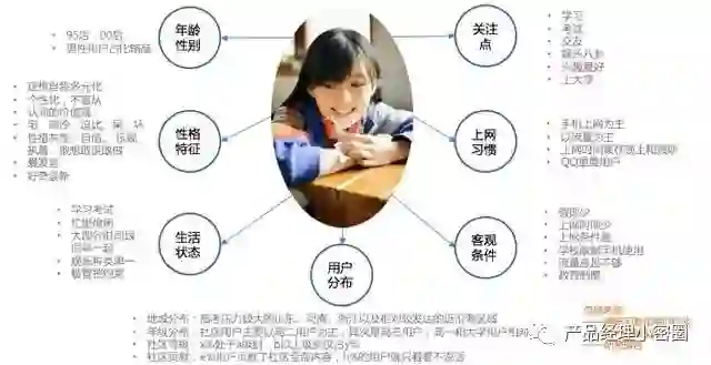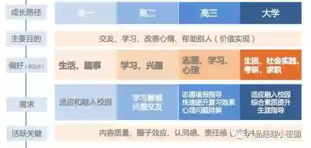 假如你是做社区产品的用户画像,那么通过用户等级数据、用户行为数据和用户贡献等数据进行分析并建立相应的用户模型,比如某K12领域社区用户分布和需求模型: