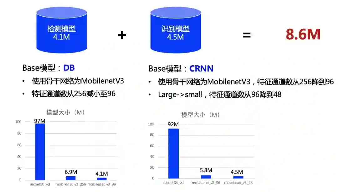 1个文本检测模型(4.1M)和1个文本识别模型(4.5M)组成,共8.6M