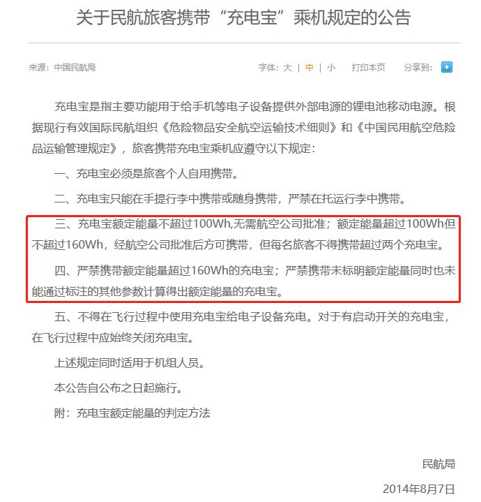 噢对了,可能有人读到这里,会觉得“不就是越大越好嘛,照大了买不就得了”的错觉,所以需要提醒一下,根据中国民航局的规定,100Wh 以下直接过安检,100-160Wh 需要批准,再多就凉了,因此容量当然是有上限的,也就是 27000mAh,即便你不嫌耽误时间,也不要超过 43000mAh,请各位牢记。