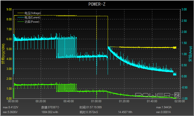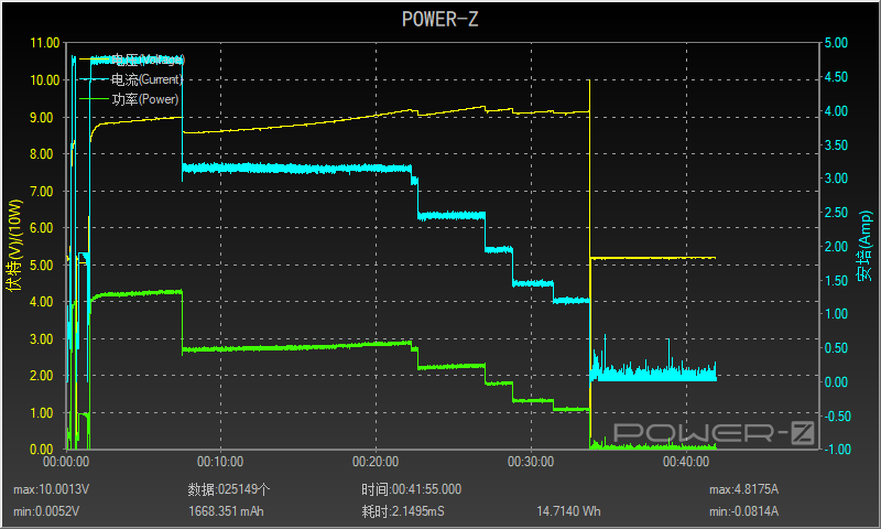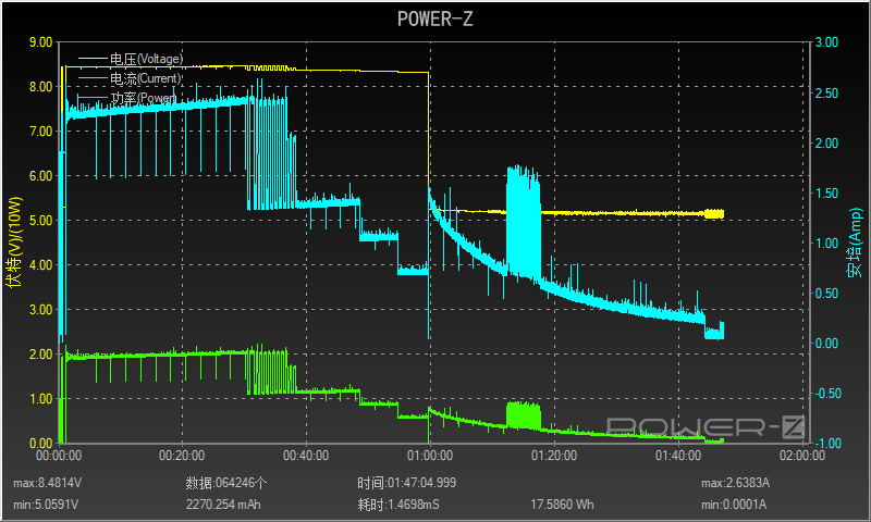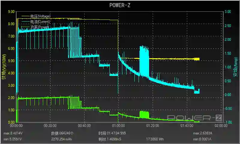 搞定了移动电源一侧,就来看看另一侧,最常见的无疑是手机,问题也差不多,一个给定容量的手机,需要多少电才能充满?和对面一样,还是得先看测试数据,基本工况就是开机息屏,从没电到彻底充满。