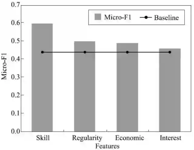 这表明四类特征对于职业选择预测都有明显影响且专业技能精通程度影响最大。