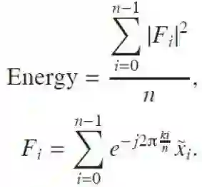 可以使用的数据以时间序列储存,分别为较短时间间隔的就餐、购物支出序列以及每日总支出序列。对于这三个序列,每一个都能得到以下七个特征:最小值,最大值,中位数,平均数,四分位距,标准差以及峰度。其次还能得到周末和工作日消费的比值。最后一项特征来自于FFT(快速傅里叶变换)。首先将长为n 的原数据[x1, x2, . . . , xn]减去平均值得到[ ˜x1, ˜x2, . . . ,˜xn],最后一项特征Energy 定义如下: