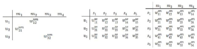 该项特征来自于学生的课程记录,其中最主要的便是学生在这门课的成绩。然而在数千门课程的数据下,如何表示这一稀疏特征,这将是一个难题。另外,许多专业技能可能是由多门课程共同决定的,比如“机器学习”的精通程度就可以用“概率统计”、“线性代数”、“数学分析”等几门课程共同决定。因此作者使用了矩阵分解的方法来进行数据降维和特征提取,