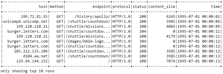 现在让我们看一下 DataFrame 中实际的日志数据。