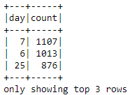 考虑一下你需要执行哪些步骤来计算每天发出请求的不同主机的数量。因为日志只包含一个月,所以可以忽略月份。你可能希望使用 pyspark.sql.functions 模块中的 dayofmonth 函数(函数模块我们已经导入为 F)。