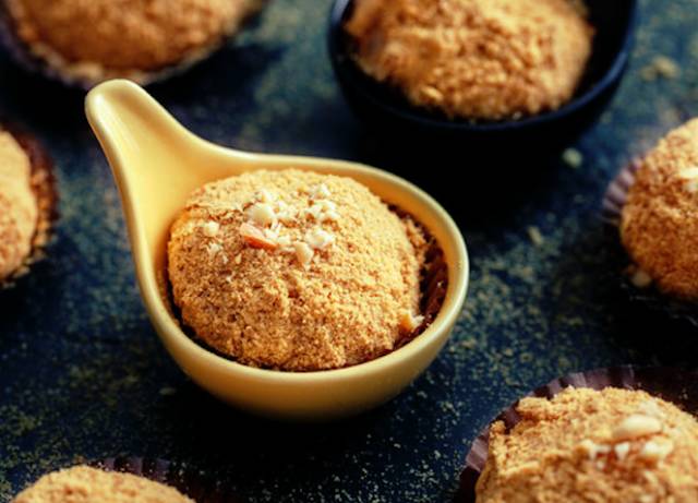 将红糖,黄豆粉,椰蓉,花生碎混合成配料备用,也可按照自己口味选择四种配料混合。