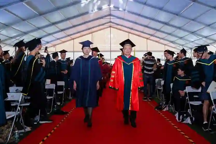 在随后举行的学位授予仪式上,数学系、物理系、化学系、生物系、力学与航空航天工程系、机械与能源工程系、材料科学与工程系、电子与电气工程系、计算机科学与工程系、环境科学与工程学院、生物医学工程系、金融系等院系负责人宣读了学士学位授予名单,南科大学位评定委员会主任陈十一逐一向182个获理学学士学位、256个获工学学士学位、109个获经济学学士学位的共计547名本科毕业生授予学位证书并合影留念。