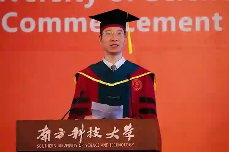 计算机科学与工程系系主任姚新代表全体教师发言。他表示,南科大学子用一举一动、一言一行定义着南科大,毕业生们更是为南科大的历史添加了光荣一页。他希望毕业生们未来能更热爱自己、热爱生活、不忘初心,始终保持昂扬的精神面貌,积极向上的心态和广博的心胸。
