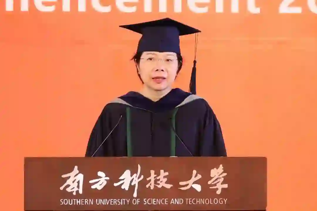 丁雪梅代表联合培养研究生合作大学哈尔滨工业大学致辞。她表示,非常荣幸能够参与见证这个属于南科大、属于每个同学的特别时刻。南科大寄托着对改革创新的探索追求,哈工大代表对科学求真的执着坚守,两校不仅有着很多共同点,更有着相似的教育理念和人文情怀,两校联手培养的这批优秀的硕士毕业生,正携手走向中国和世界创新创业舞台。希望同学们能拥有独立自信的高贵气质,开拓创新的坚守精神和海纳百川的广阔胸怀,在祖国建设的广阔天地中,不忘初心,牢记使命,奋发进取,乘风破浪。