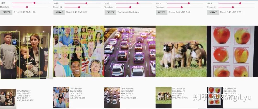 最后用ncnn部署到手机上之后跑了一下benchmark,模型前向计算时间只要10毫秒左右,对比yolov3和v4 tiny,均在30毫秒的量级。在安卓摄像头demo app上,算上图片预处理,检测框后处理以及绘制检测框的时间,也能轻松跑到40+FPS~。(关于模型从pytorch到安卓的部署,以及如何用C++实现GFL检测框的后处理,我会再专门发一遍文章详细介绍)