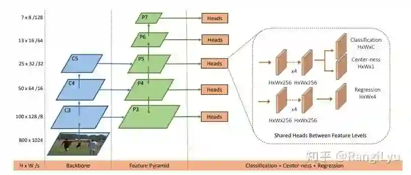 在找到了合适的损失函数之后,接下来的关键就是如何使其在轻量化模型上发挥作用了。首先需要对移动端进行优化的就是检测头:FCOS系列使用了共享权重的检测头,即对FPN出来的多尺度Feature Map使用同一组卷积预测检测框,然后每一层使用一个可学习的Scale值作为系数,对预测出来的框进行缩放。