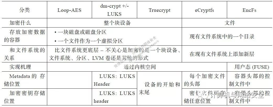 磁盘文件加密主要是针对非结构化数据,例如备份文件等。应用本身不需要关注加密过程,只需要将文件扔到加密存储介质上,高性能的磁盘加密一般都通过硬件加密芯片实现。它的通病是一旦密钥泄露就会失效,表1是对几种主流加密方式的对比。