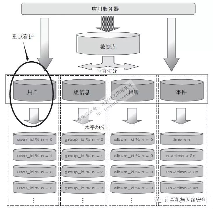 对于在线应用的后台数据存储而言,敏感数据(例如用户库、口令、密保、支付等)应考虑分表分库存储,应尽量减少一个上层应用出现漏洞时的影响,例如某个应用出现SQL注入时,它应该只能影响那个应用对应的库,而不是全部的数据。大型网站的后台数据存储几乎都是分片的(Sharding),从安全上应考虑敏感数据的集中存储,过于分散会加大监控的成本,因为“如果所有的都重要那就等于没有一样是重要的”,如图2所示。