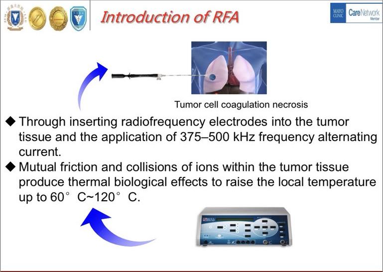 方勇教授指出肺癌在就诊大多数已处于晚期,失去手术根治的机会,只能从放化疗等全身治疗中获得有限的收益,而包括射频消融在内的诸多局部治疗方式的发展给更多的患者带来了局部根治的机会。方教授首先详细介绍了射频消融的具体概念与操作。射频消融分为根治性消融和局部消融,两者的适用条件和具体操作存在根本差别。CT、超声等影像学引导在射频消融的具体操作中至关重要。随后方教授结合临床实例展示了射频消融在NSCLC的治疗管理中的作用:适用于I期但不能耐受手术者;适用于肺部转移肿瘤患者;适用于晚期NSCLC靶向治疗后发生局部进展的患者;可序贯于化疗之后作为综合治疗的一部分;放化疗进展后的患者可尝试用射频消融治疗;用于晚期NSCLC患者的姑息性治疗,减轻肿瘤疼痛。