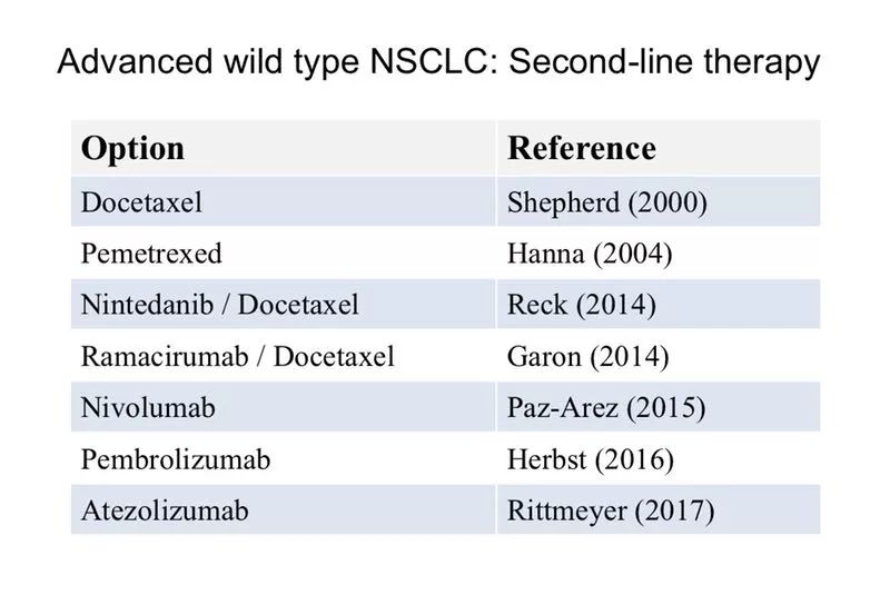 时至2018年,驱动基因阴性的晚期NSCLC,目前非鳞癌一线建议培美含铂化疗联合pembrolizumab+/-贝伐,对于鳞癌一线建议非培美含铂化疗联合pembrolizumab+/-Necitumumab。驱动基因阴性患者的二线治疗,目前有经典的多西他赛、培美曲赛、尼达尼步+多西、雷莫卢单抗+多西、nivolumab、pembrolizumab、atezolizumab。美国批准了3个免疫检查点抑制剂用于晚期NSCLC,包括两个PD-1抑制剂,nivolumab和pembrolizumab,一个PD-L1抑制剂,atezolizumab;欧盟只批准了nivolumab和pembrolizumab。pembrolizumab在一线治疗中有单药及联合治疗的阳性临床研究结果,并已获得相应的适应症,PD-L1的检测抗体多种多样,分别应用了不同的抗体和不同的cut-off值。目前已公布的一线临床研究涉及不同的药物组合。