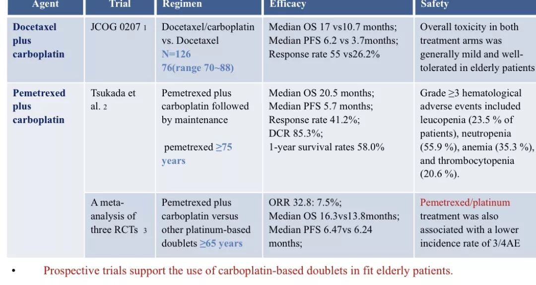 目前老年晚期NSCLC患者全身治疗的方案推荐:
