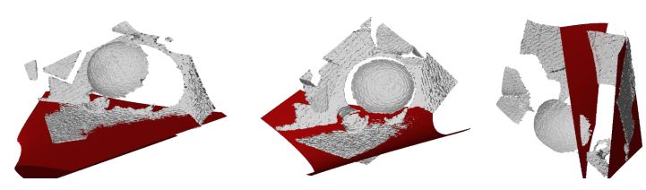 图9:当平面聚集了多数选票时,我们的方法通过紧密的非退化的二次曲面来逼近它们。