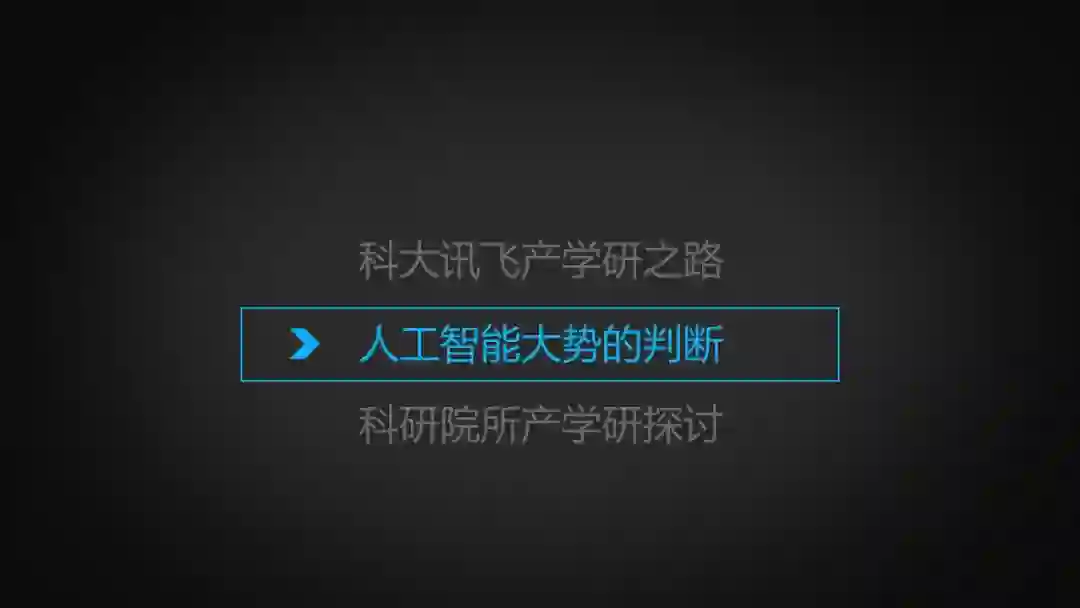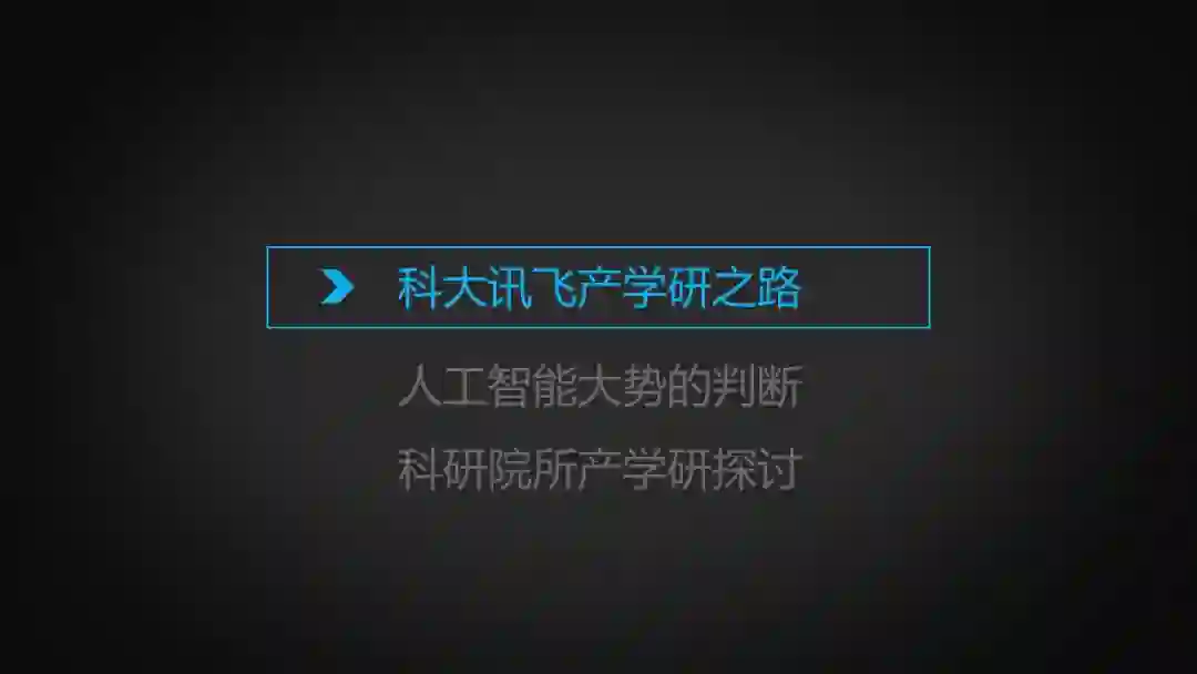 科大讯飞在人工智能还处于低潮的1999年,开启了智能语音和人工智能之路。胡国平希望能将科大讯飞19年的经历和经验,与有计划或者已经在付诸行动的从事人工智能技术研究、人工智能应用开发、人工智能产学研创新的团队和个人一起分享,给他们带去一些可供借鉴的意义。胡国平的报告分为三个部分:科大讯飞产学研之路、人工智能大势判断和科研院所产学研探讨。
