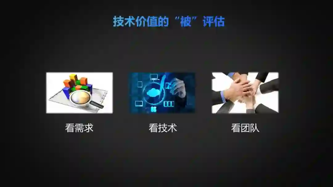胡国平说,从投资方角度,可以从三个方面对技术价值进行评估,即看需求、看技术、看团队。