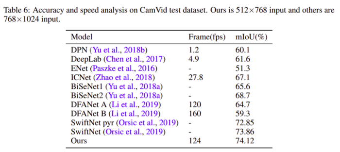 表6中显示了之前的stage和我们的模型结构所实现的FPS和IOU的比较分析。