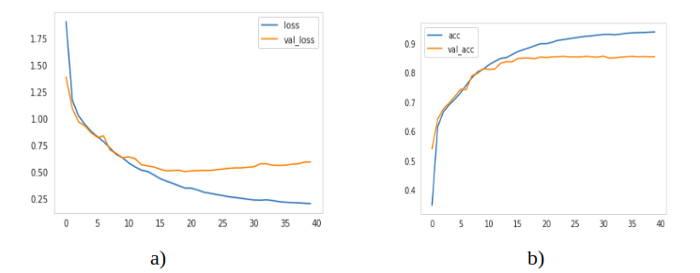 模型训练了40个epoch,训练的平均像素精度为93%,验证的平均像素精度为88%。损失和像素级精度(训练和测试)被绘制成epoch的函数,如图4所示: