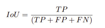 其中TP为真阳性,FP为假阳性,FN为假银性,IOU表示交并比。