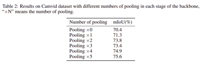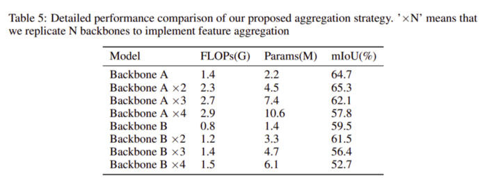 使用多个block、FLOPS和参数对IOU的影响如表5所示。在这里,FLOPS和参数是我们的模型架构所需要的计算量的度量。