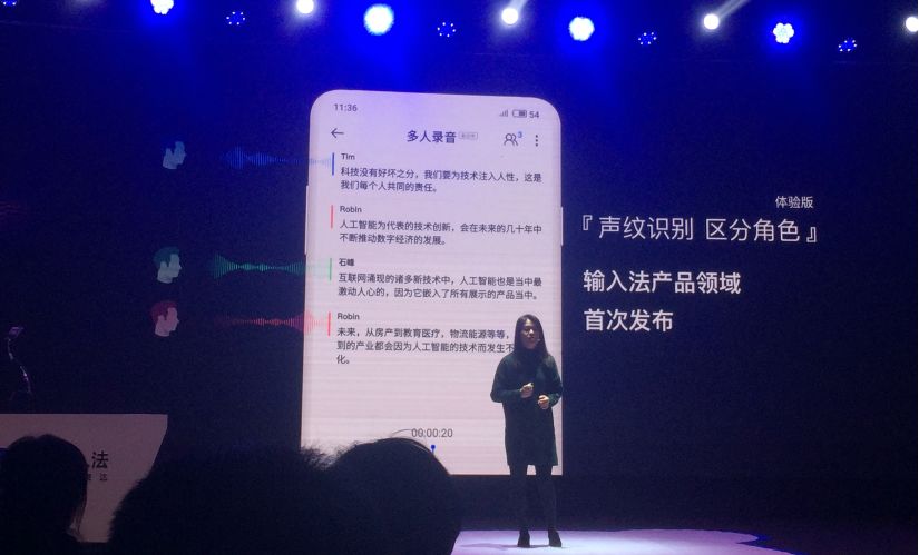 其中,「语音速记」这个功能在输入法领域,首先独家采用了「声纹识别」技术。该技术主要针对 2-3 人小型会议场景,可根据声纹自动区别发言人,实现智能化的语音识别。
