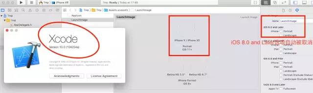 项目中使用LaunchImage来做启动图,那么有可能在XCode GM的LaunchImage中会出现只有iPhone X/iPhone XS启动图,并且iOS 8.0 and Later 没有被选中,并且没有iPhone XR/iPhone XS Max,需要手动选择一下iOS 8.0 and Later,才会出现iPhone XR/iPhone XS Max启动图。 这可能是XCode GM中的一个Bug。