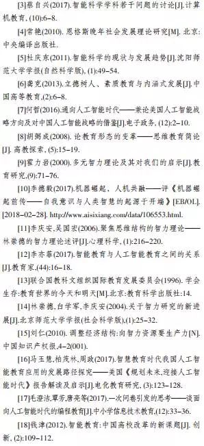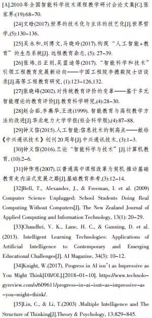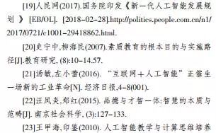 心理学、计算机科学、教育学领域对于如何提升人的智力与能力的研究与实践,已经取得了很多进展(张晓峰,2002;林崇德等,2004;蔡曙山等,2016)。近些年人工智能成为信息技术的制高点(钟义信,2015),被认为是新一轮产业革命的引擎(汤敏等,2016),美国先于中国开始做出系统的规划(马玉慧等,2017)。2017年中国政府也发布了《新一代人工智能发展规划》(以下简称《规划》),其中保障措施包括了实施“全民智能教育项目”(人民网,2017)。人工智能教育早已有之,但将智能教育推向全民,成为所有人都需要学习的内容,在历史上还是首次,一时成为研究热点。