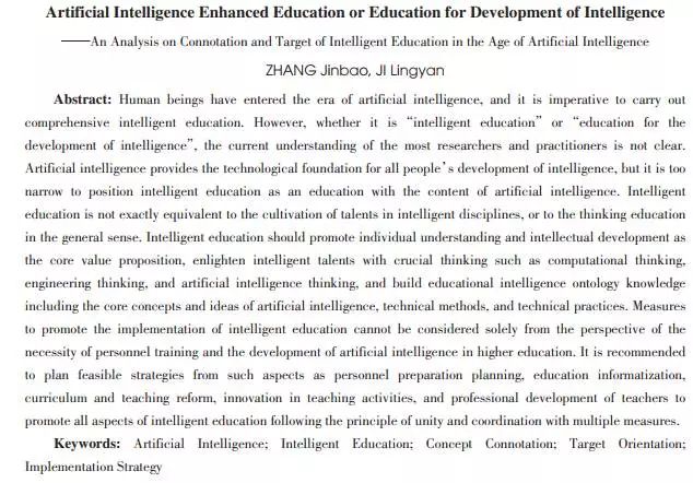 关键词:人工智能;智能教育;概念内涵;目标定位;实施策略