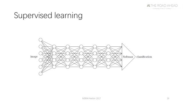 学习理论有两种:一种是有监督学习,例如,首先我们需要将有标签的数据用于训练特定网络模型,根据标签调整模型权重使它能对输入数据正确地分类。这个过程是用一个叫梯度下降的技术实现的,具体是根据误差对权重的导数来调整权重值。另外一种是无监督学习,例如,首先我们将图像输入网络模型,但是不是对它进行分类,而是让模型重新生成相同或相近的图像,从而使其从没有标签的数据中学习得到图像的表示。比如无人驾驶,要设想所有可能遇到的情景对机器进行训练是不现实的,因此我们会选择给它一个方法,让它实现自我学习。