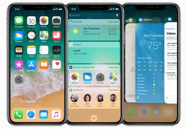 iPhone X 使用屏幕边缘手势来访问主屏幕、应用切换、通知中心和控制用心。