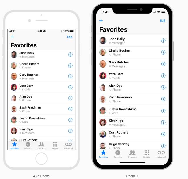 大部分应用都使用了系统提供的标准组件,如导航栏、表单等…这些系统部件会自动适配 iPhone X 的屏幕,部件的背景将会向上拉伸至屏幕边缘,状态栏中的元素将会按照规则重新摆放。