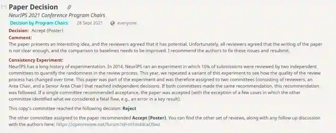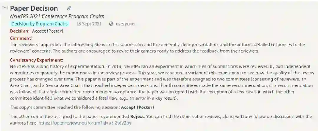 自2014年开始,NeurIPS就在进行一致性实验,由两个独立的委员会审查10%的提交材料,从而量化审查过程中的随机性,以及审查过程的质量如何随时间的推移而变化。