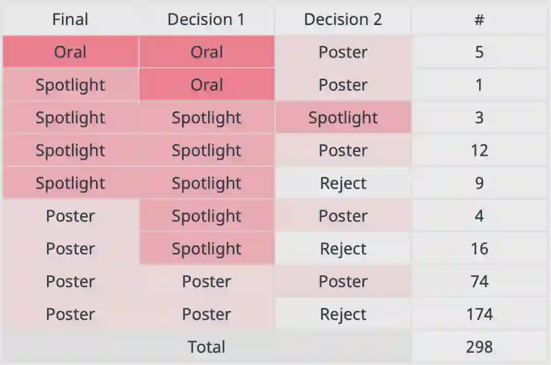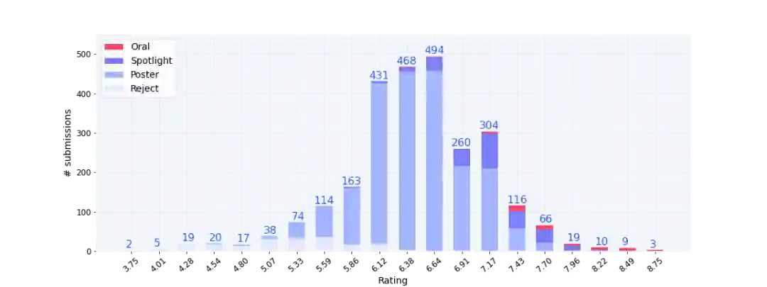 近日,这些论文的得分数据统计,以及「一致性实验」的评审结果也被放出了!