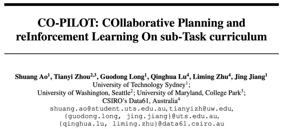作者在文章中提出了一个新的框架CO-PILOT,其中规划器(Planner)和强化学习代理从头开始训练,并可以通过自动生成的易到难的子任务课程,相互促进和指导彼此的训练。