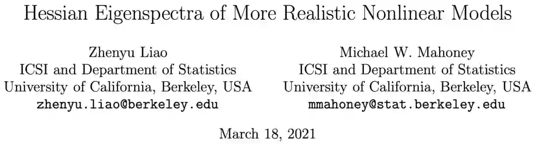 「Hessian Eigenspectra of More Realistic Nonlinear Models」的一作Zhenyu Liao现在是华中科技大学电子信息与通信学院的助理教授。