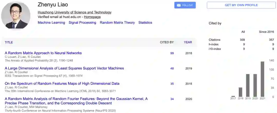 在此之前,Zhenyu Liao于2020年在加利福尼亚大学伯克利分校统计系做博士后研究。