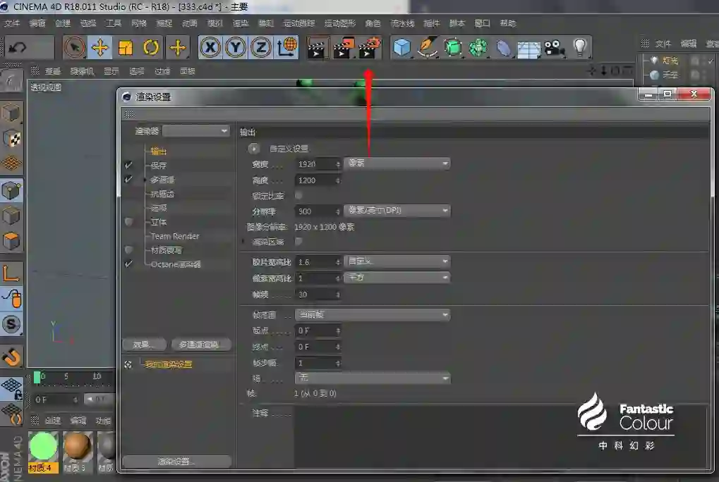 进行【渲染】,鼠标点击【编辑渲染设置】进行渲染调整,将将宽度设置为1920高度设置为1200分辨率设置为300。如图28所示: