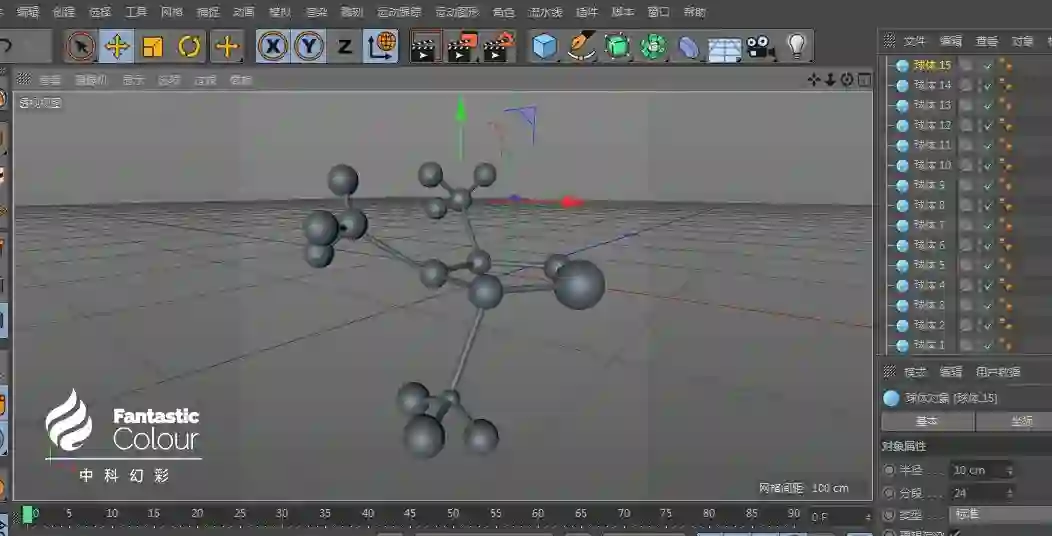 建立半径为10cm的【球体】通过移动方向添加到每一个节点处。如图18、图19所示: