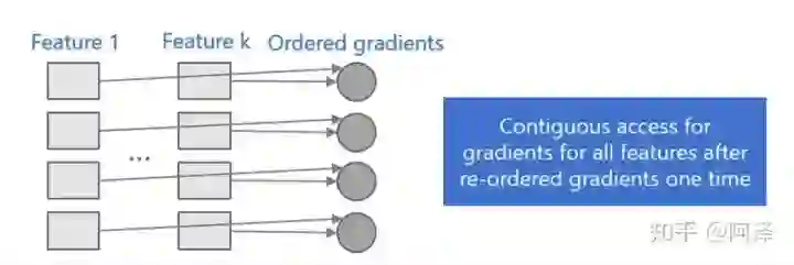 首先,所有的特征都采用相同的方法获得梯度(区别于不同特征通过不同的索引获得梯度),只需要对梯度进行排序并可实现连续访问,大大提高了缓存命中;