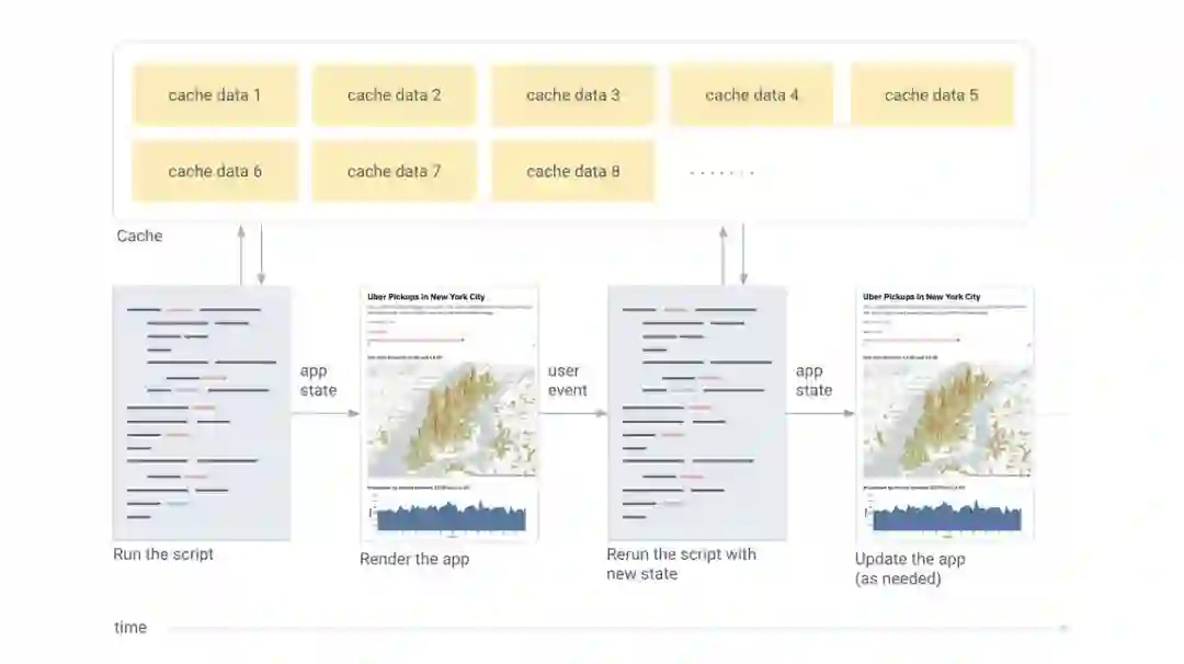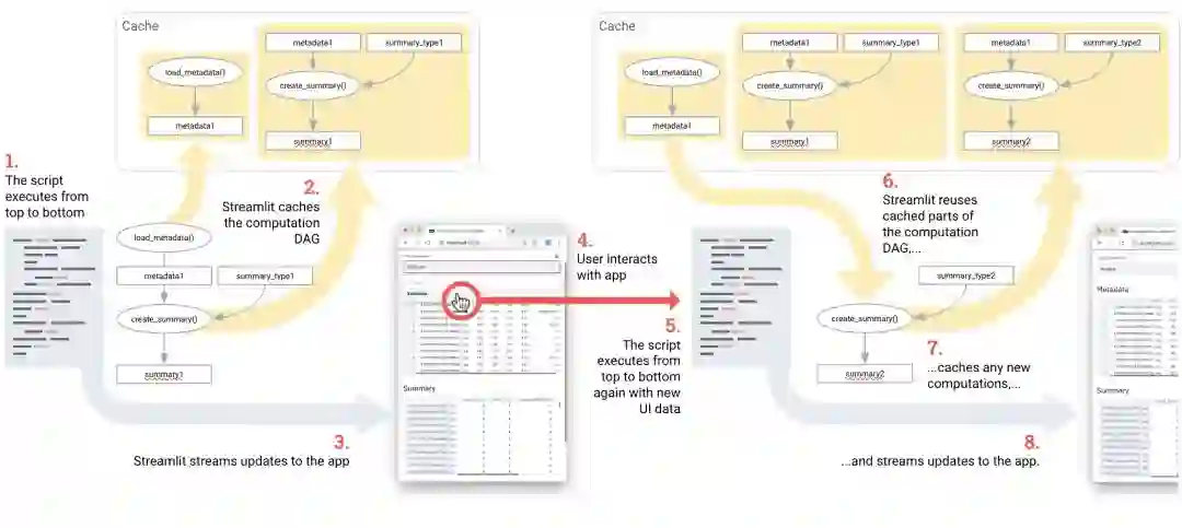用户事件触发 Streamlit 从头开始重新运行脚本。不同运行中仅保留缓存。