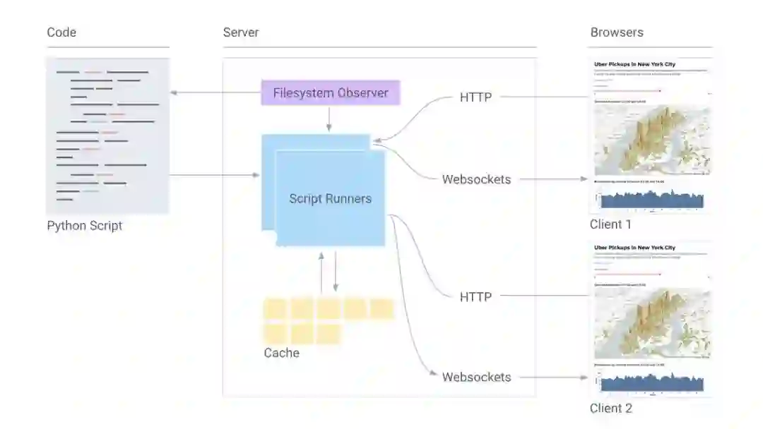 以上只是 Streamlit 功能的冰山一角而已。它最令人兴奋的一点是,这些原语可以轻松组成复杂 app,但看起来却只是简单脚本。这就要涉及架构运作原理和功能了,本文暂不谈及。