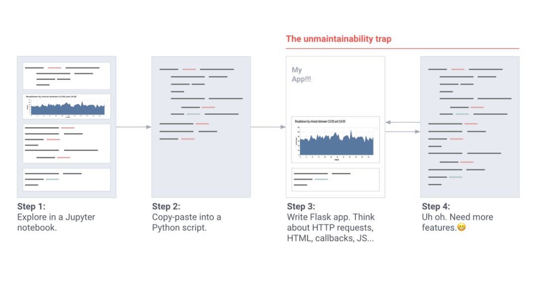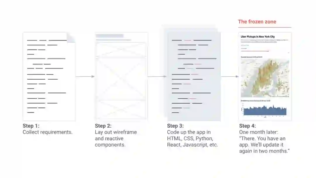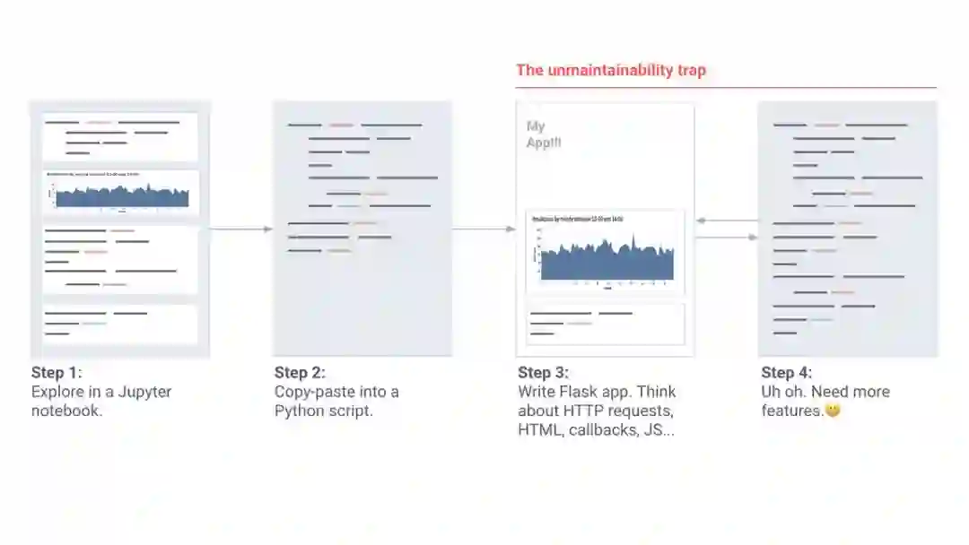 我们返回之前自行构建工具的流程:部署 Flask app,写 HTML、CSS 和 JavaScript,尝试对从 notebook 到样式表的所有一些进行版本控制。我和在 Google X 工作的朋友 Thiago Teixeira 开始思考:如果构建工具像写 Python 脚本一样简单呢?