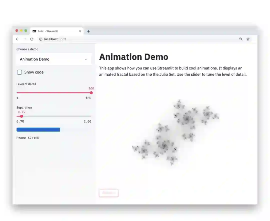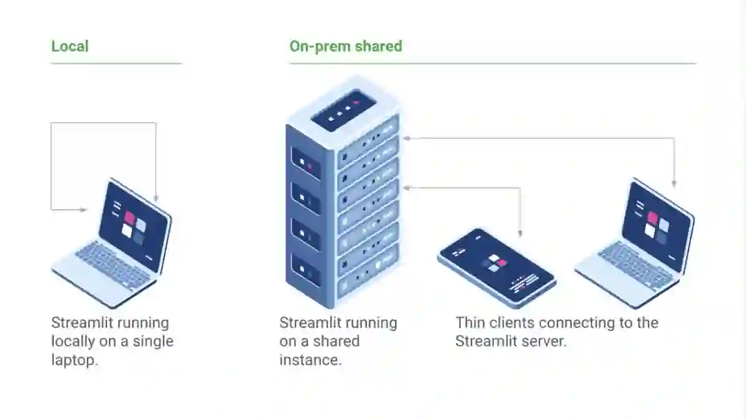 Streamlit 是免费开源库,而非私有 web app。你可以本地部署 Streamlit app,不用提前联系我们。你甚至可以在不联网的情况下在笔记本电脑上本地运行 Streamlit。此外,现有项目也可以渐进地使用 Streamlit。