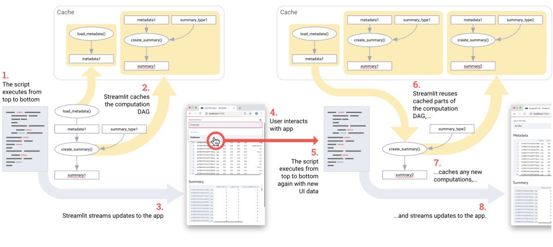 为了保证 app 的可执行性,Streamlit 仅计算更新 UI 所必需的部分。