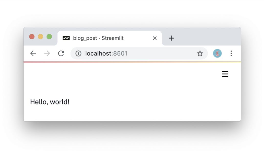 网页浏览器将自动打开,并转向本地 Streamlit app。如果没有出现浏览器窗口,只需点击链接。
